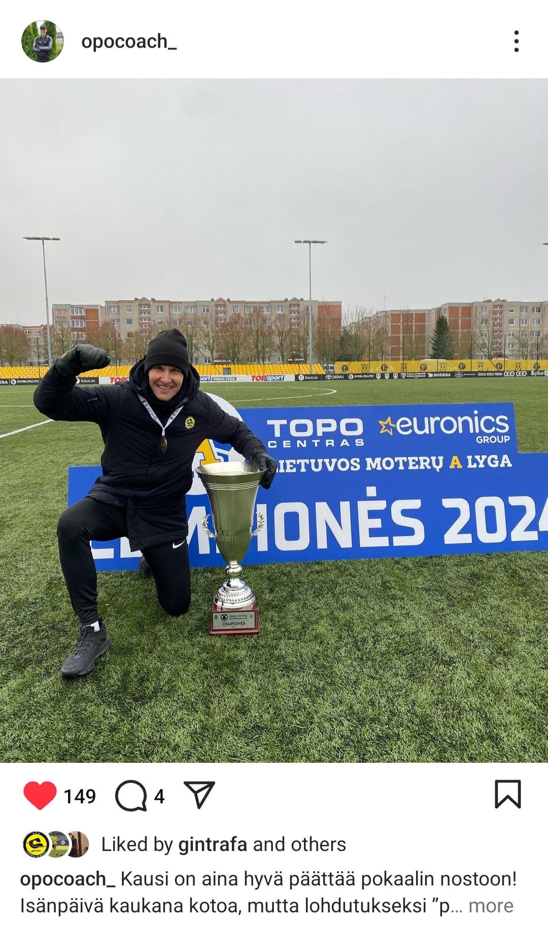 Sutrumpintai „Opo“ komandos narių vadinamas strategas šį sezoną su „Gintra“ iškovojo A lygos auksą, Baltijos lygos bronzos medalius, o UEFA Čempionių lygos atrankos turnyre pateko į finalą, kuriame po garbingos kovos 0:2 nusileido legendiniam Škotijos klubui Glazgo „Celtic“.